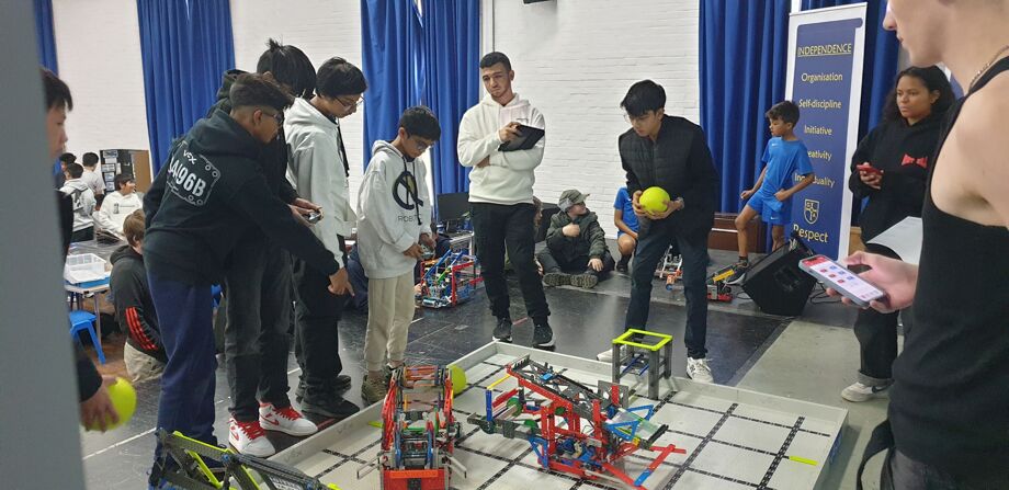 Highlights included the Year 8 team, Cyberdroids (Zayan, Shelton, Karamveer, Aarya, Aadam, Shresth) being placed 2nd in the teamwork event, beaten only by a score from the winning pairing which was the highest score posted in the UK so far. Last year’s World Championships team Mekanix (Daniyal, Angad, Aaron, Aarnav, Mustafa and Joseph from year 10) struggled to get consistency in their innovative double-ball-launching mechanism but still achieved a commendable 4th out of 17 attendees in the driver skills part of the event.